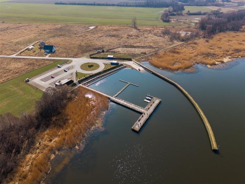 mariny – przystani żeglarskiej, oraz około 100 m od drogi głównej. To