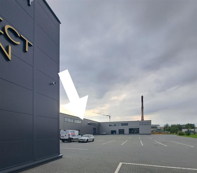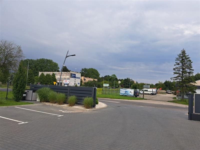 Wjazd na teren obiektu zamykaną bramą, dostęp dla najemcy stały. Przed halami duży parking dla klientów i pracowników.