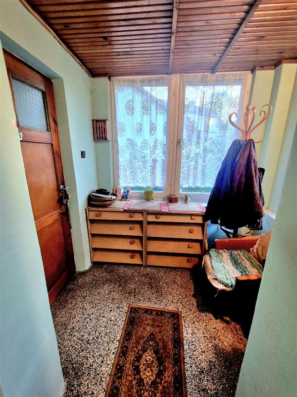Parter: wc, 2 pokoje, duża kuchnia, korytarz, weranda.