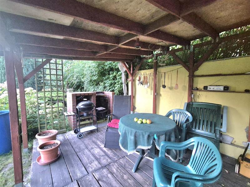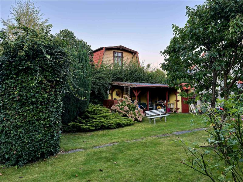 Na działce znajduje się również drewniana altana ogrodowa – idealna przestrzeń do relaksu i spędzania czasu na świeżym powietrzu.