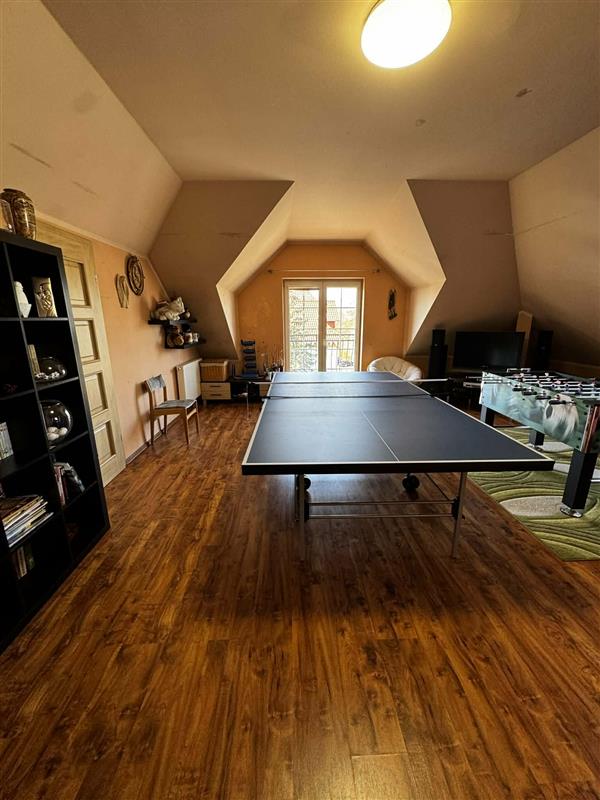 Na 2 kondygnacji - korytarz, pokój bilardowy z wyjściem na balkon – widok na ogród, pokój ze stołem do tenisa stołowego i ,,piłkarzyki”, ten pokój ma własną łazienkę. 3 pokoje posiadają własną garderobę, na tej kondygnacji mieszczą się dodatkowo 2 sypialnie i duża łazienka.