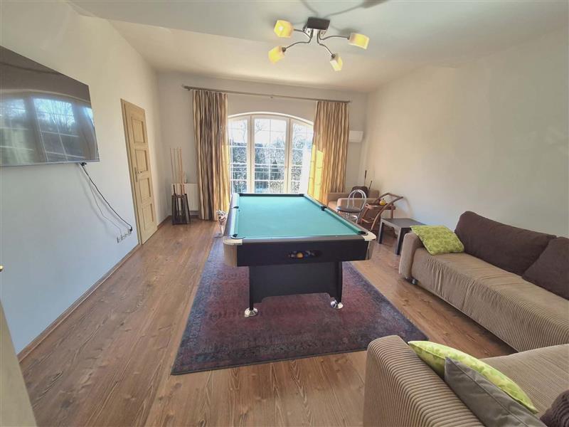W budynku zostaje oświetlenie i większość zabudowy meblowej oraz w części rekreacyjnej możliwość pozostawienia stołu bilardowego i innych mebli i sprzętów.
