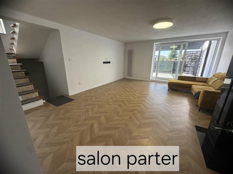 Wysoki parter: : salon z tarasem, oddzielna kuchnia. Z parteru wyjście na tył ogrodu.