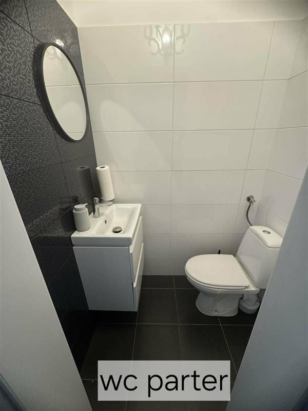 Podpiwniczenie: duże pom. biurowe z oknem, kilka pomieszczeń gospodarczych, łazienka z wc z kabiną prysznicową. Obecnie zaaranżowane na biuro.