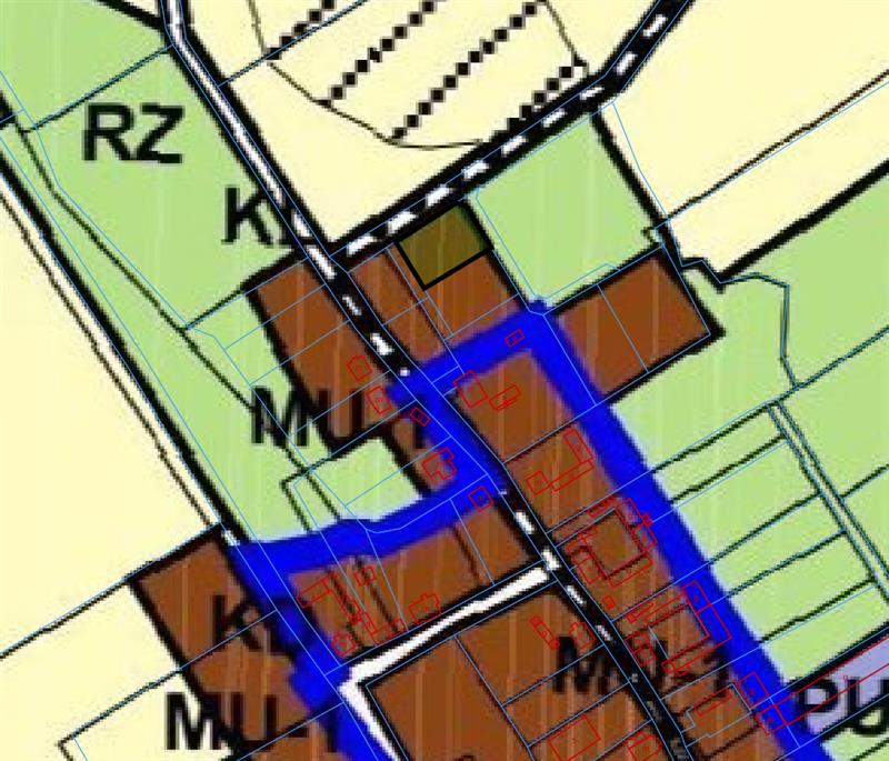 Zgodnie z obowiązującym planem zagospodarowania przestrzennego Gminy Darłowo działka położona jest na terenie zabudowy mieszkaniowej, usług nieuciążliwych oraz produkcji rolnej o maksymalnym w.i.z. 0.75, oznaczonym symbolem MU-1. Maksymalna wysokość zabudowy 12 m, maksymalnie dwie kondygnacje nadziemne, dopuszcza się trzy, jeśli ostatnia kondygnacja mieści się w dachu stromym. Minimalna powierzchnia biologicznie czynna 30% powierzchni działki, maksymalna powierzchnia zabudowy 50% pow. działki.