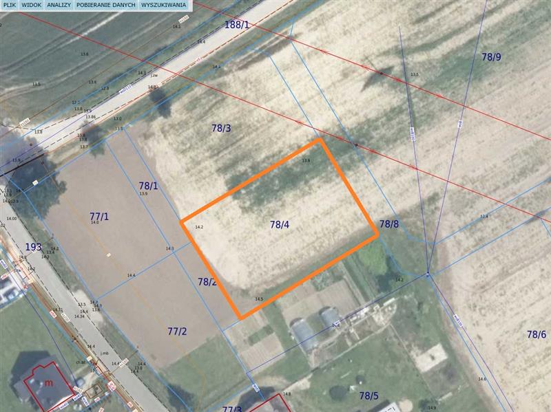 w odległości kilku metrów od północnego narożnika działki, przechodzi napowietrzna linia energetyczna.