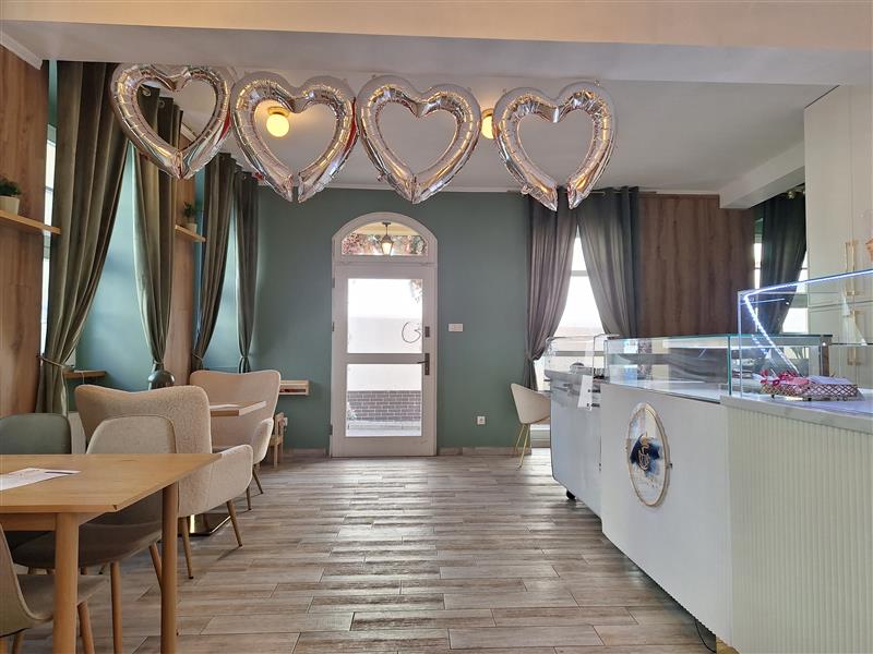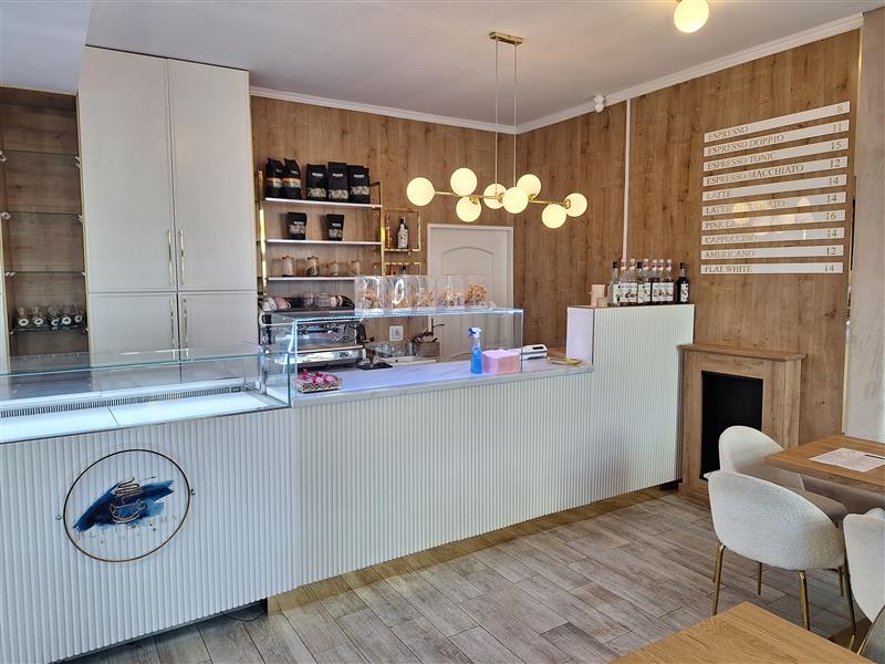Lokal po remoncie, na podłogach płytki drewnopodobne, ściany otynkowane malowane farbami, częściowo pokryte ozdobną okładziną. W lokalu mieści się profesjonalny sprzęt do prowadzenia cukierni, między innymi bardzo kosztowna witryna do monoporcji - jest możliwość odkupienia wyposażenia od poprzedniego najemcy.