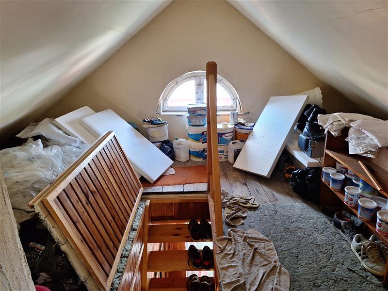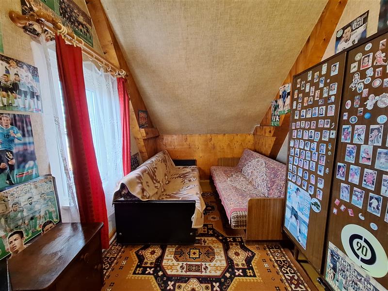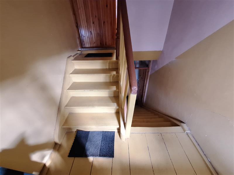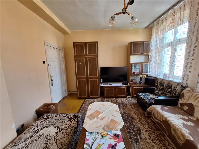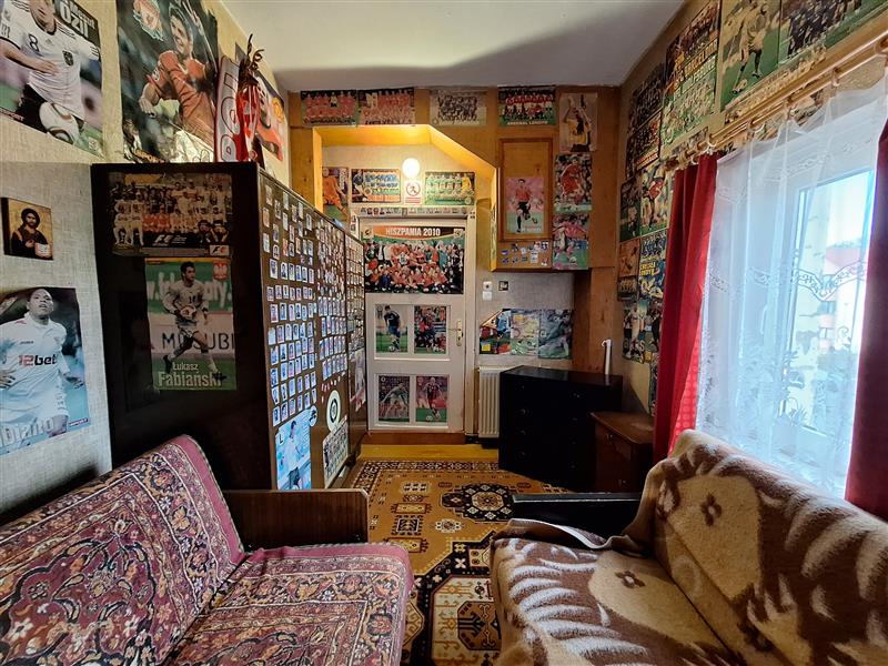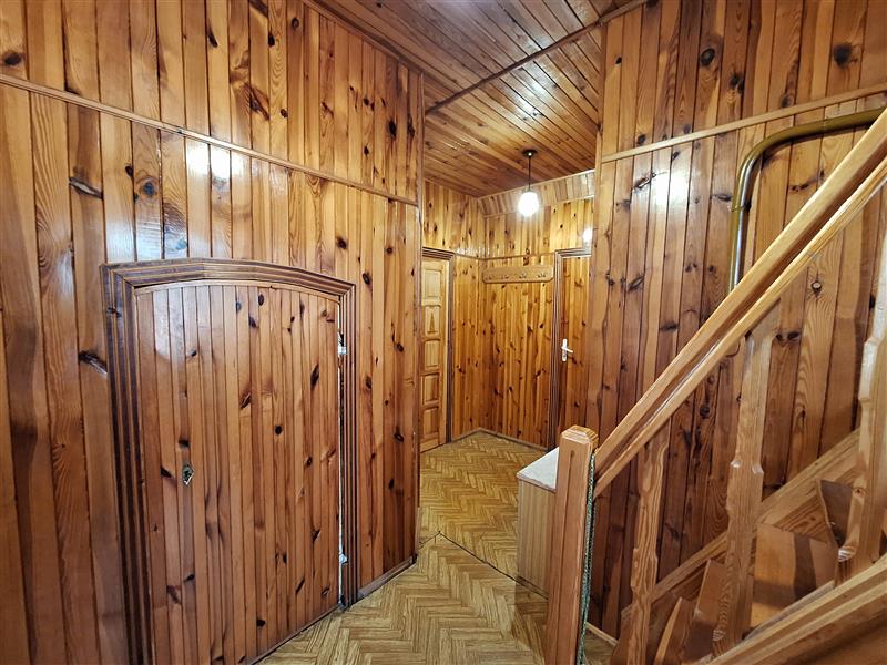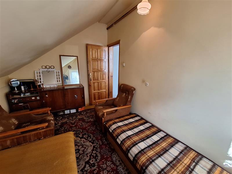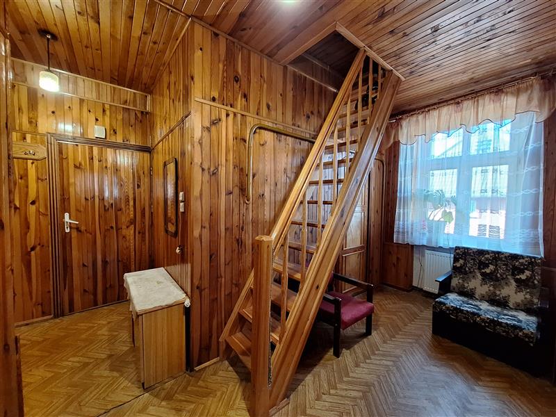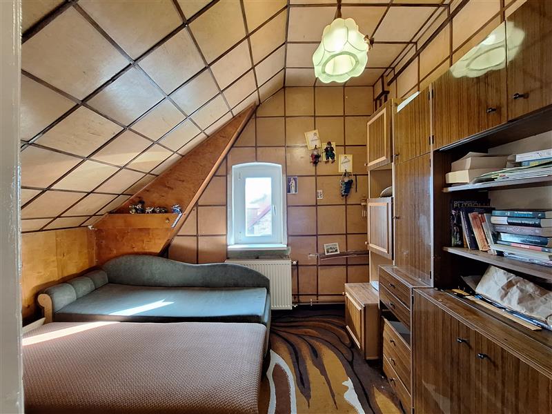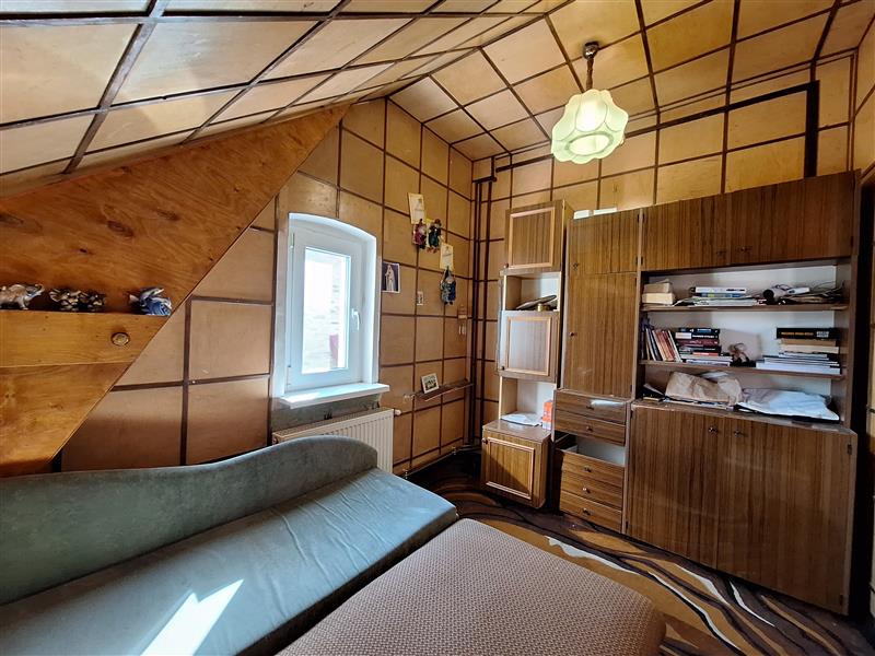 Wystawiony na sprzedaż lokal znajduje się na piętrze, składa się z następujących pomieszczeń: korytarza ze schodami na poddasze, 5 pokoi z czego dwa są pokojami przechodnimi, kuchni, łazienki, oraz małej spiżarki o łącznej powierzchni użytkowej 70,31 mkw., dodatkowo dostępny jest duży strych, oraz zlokalizowany na wspólnej działce wolnostojący garaż.