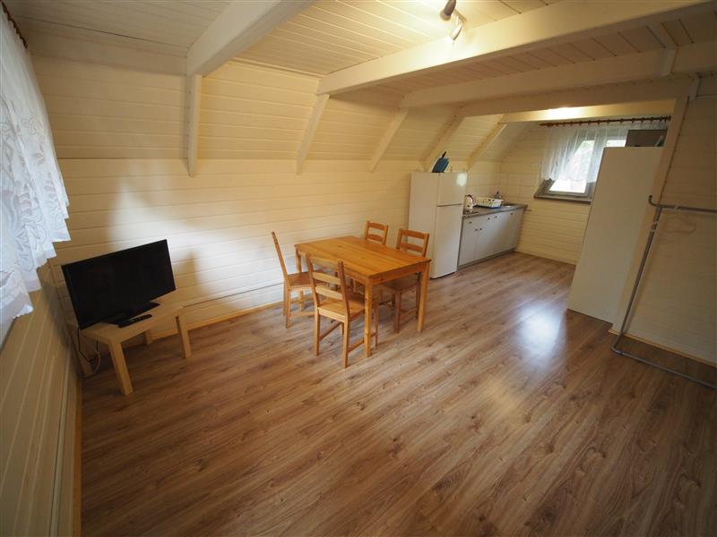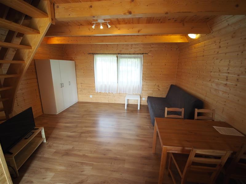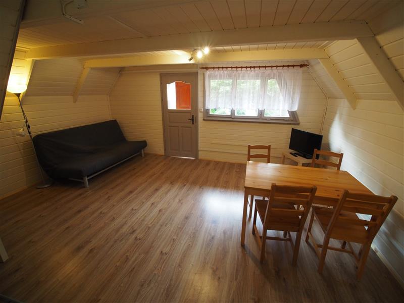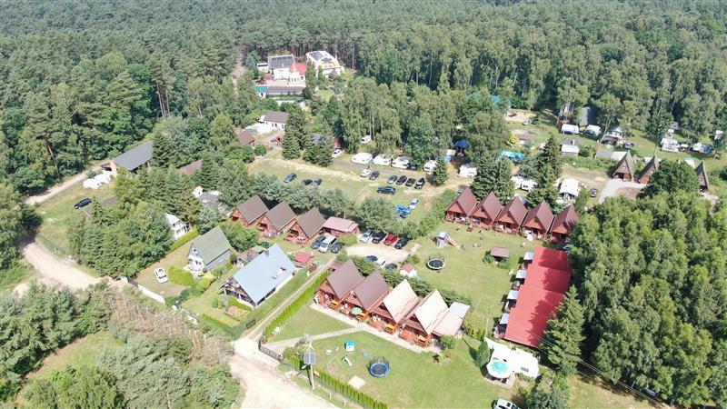 12 domków jest przeznaczonych pod wynajem, jeden domek słuzy do obsługi ośrodka, pełni rolę recepcji i magazynu. Domki są 6-osobowe, łącznie na terenie ośrodka może nocować 72 osoby. Domki są bogato wyposażone i estetycznie urządzone. W każdym domku jest salon z aneksem kuchennym, jedną lub dwiema sypialniami i łazienką z prysznicem. W aneksach kuchennych jest lodówka, płyta ceramiczna, pochłaniacz, czajnik elektryczny i niezbędne naczynia kuchenne. W domkach jest woda, prąd z siłą, naziemna telewizja cyfrowa i WiFi. Do każdego domku jest przygotowane jedno miejsce parkingowe, parking leży na terenie ośrodka, jest on całodobowo monitorowany. Parking przygotowany na 15 aut.