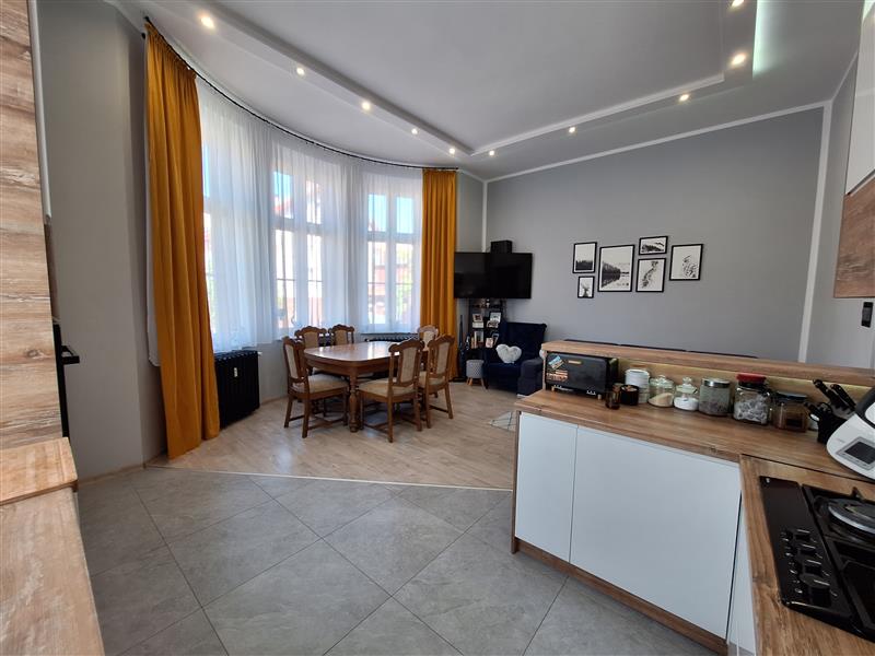 W sprzedaży mieszkanie na podwyższonym parterze, o powierzchni 77,70 mkw. Budynek w której mieści się lokal to wolnostojąca eklektyczna kamienica o ciekawej architekturze i elewacjach zdobionych detalem. Nieruchomość znajduje się po południowo zachodniej stronie miasta, w odległości 300 m do rzeki Wieprzy, 600 m od starego rynku, oraz 3 km od morza.