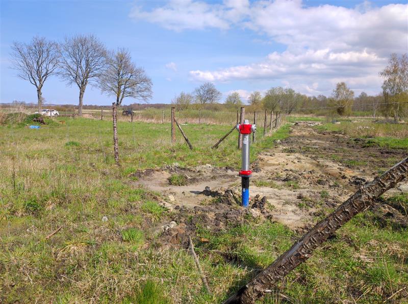 Prąd i woda na granicy działki. Teren działki płaski i suchy, w całości ogrodzony siatką leśną.