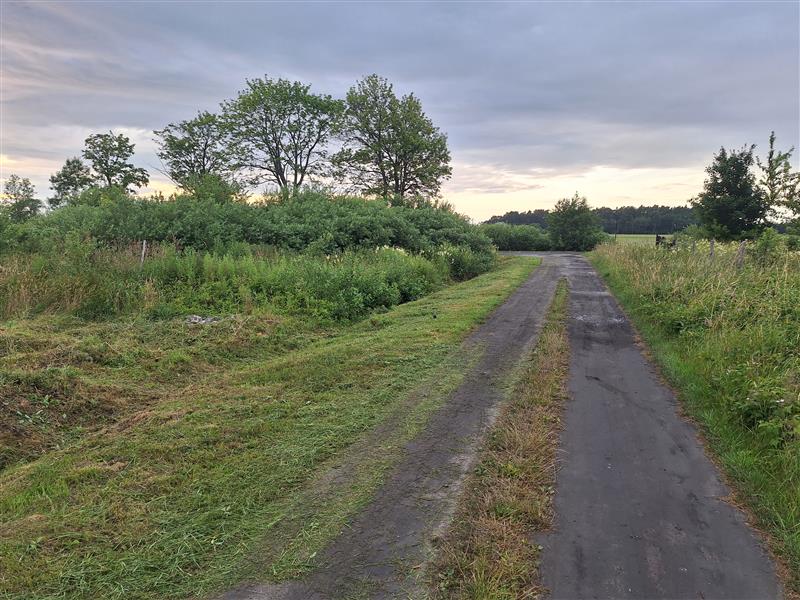 Tymczasowy wjazd na działkę bezpośrednio z drogi wojewódzkiej nr 205. W aktualnym MPZP dojazd ulicą Klonową. W sprzedaży również udział w działce drogowej, drogę na ostatnim odcinku 50 metrów trzeba utwardzić.