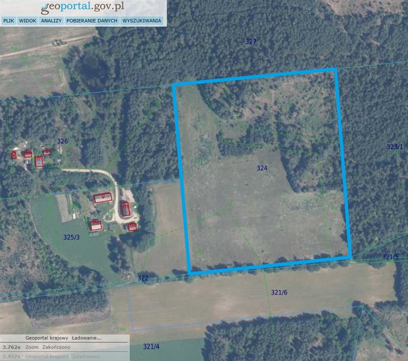 Działka siedliskowa w lesie, kilometr od jeziora "Mausz"