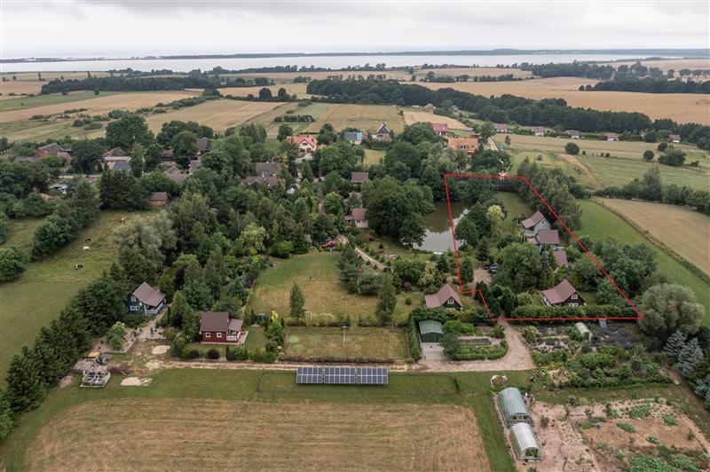 Nieruchomość wyróżnia się przepięknie zaprojektowaną i zadbaną zielenią – od bujnych rabat po staw rybny otoczony starodrzewem – tworząc idealne miejsce relaksu. Cały teren cieszy się uznaniem wśród miłośników wypoczynku z Niemiec, którzy doceniają przestrzeń, estetykę i kontakt z naturą.