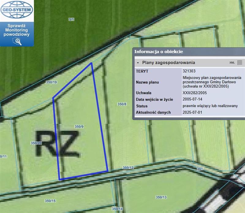 Działka jest styczna narożnikiem z kolejną podobną działką w sprzedaży, o powierzchni 0,8 ha, za kwotę 110 tyś. zł - działka przyległa do drogi wojewódzkiej.