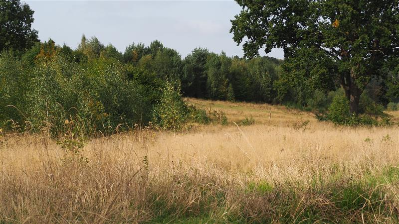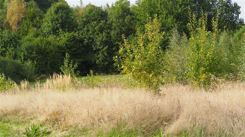 Teren działki lekko opadający w kierunku południowym. Działki sąsiednie niezabudowane, za drogą dojazdową są najbliższe zabudowania mieszkalne, od strony zachodniej jest ściana lasu.