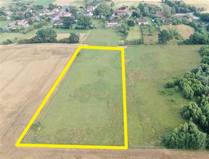 W sprzedaży działka rolna o powierzchni 9 300, w kształcie prostokąta o długości boków ok. 190 m, i szerokości 50 m, położona na obrzeżach wsi, w sąsiedztwie lasów.