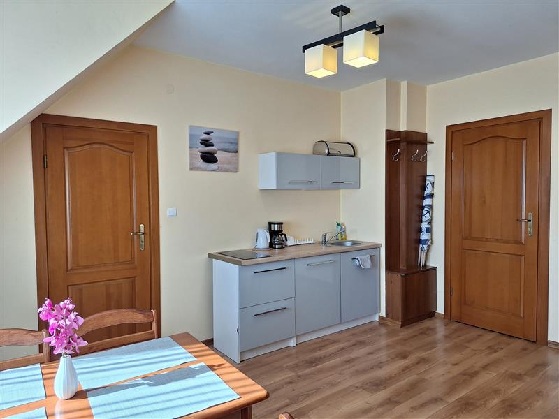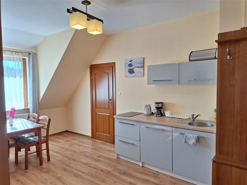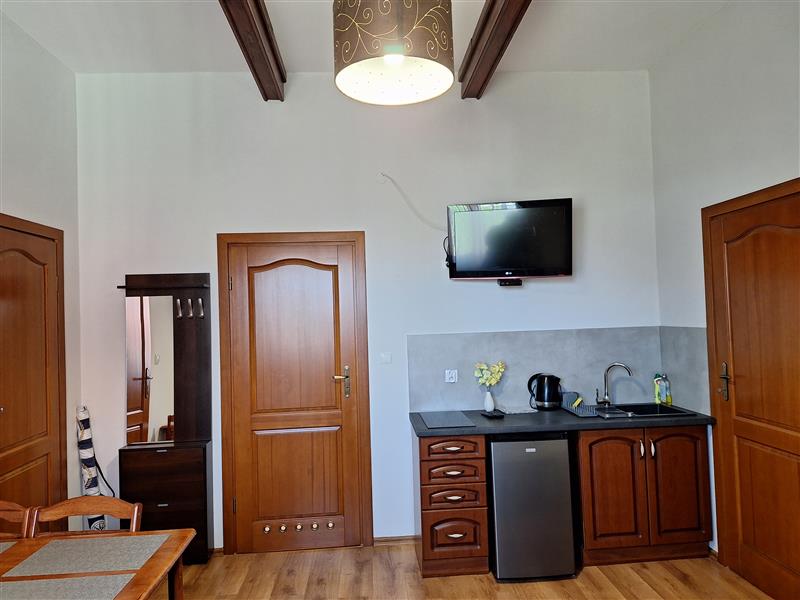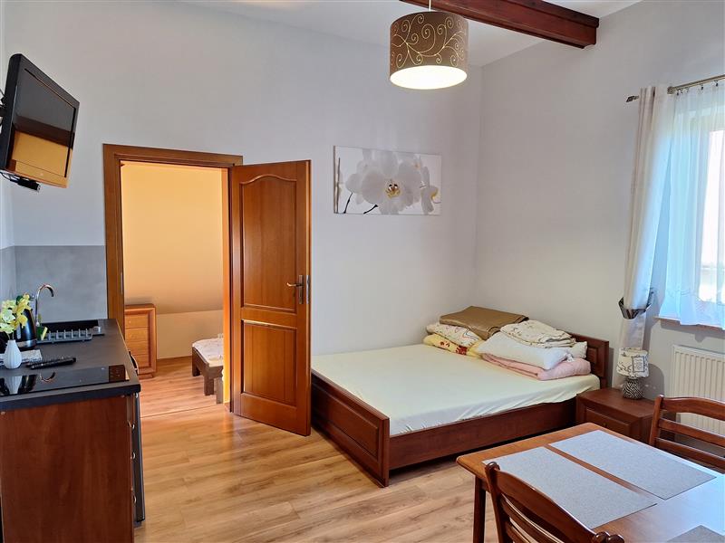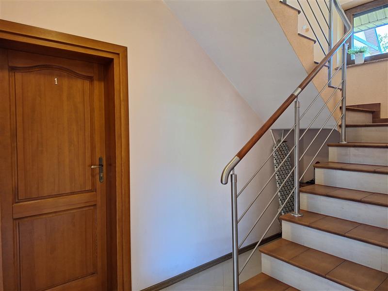 Dom składa się z mieszkania właścicieli oraz 6 pokoi przeznaczonych na wynajem, co stanowi doskonałą okazję do prowadzenia działalności w turystyce lub wynajmie krótkoterminowym. W sumie nieruchomość oferuje 4 łazienki, co zapewnia komfort zarówno mieszkańcom, jak i gościom.