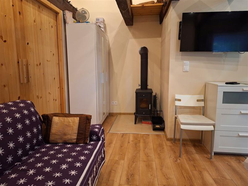 Ogrzewanie – piec wolnostojący, ciepła woda użytkowa z bojlera elektrycznego (zawieszonego w łazience).