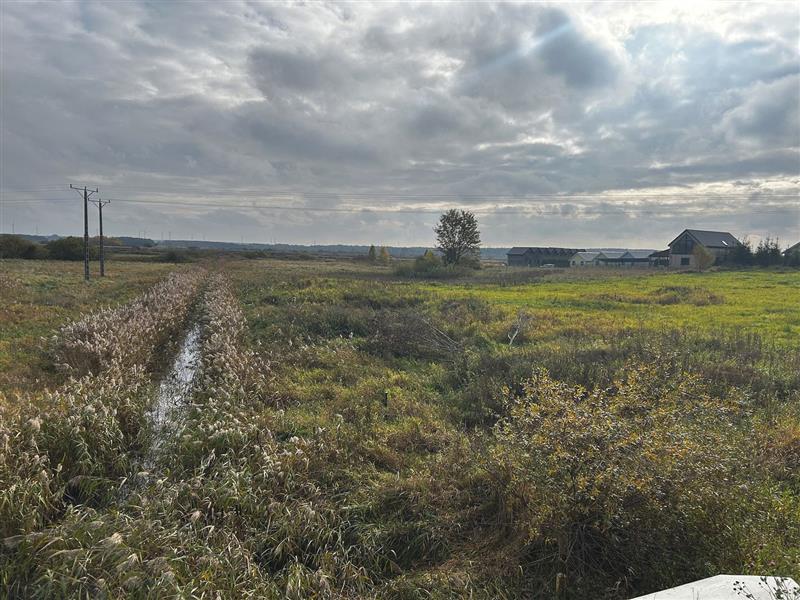 Oferujemy na sprzedaż działkę budowlaną o powierzchni 6856 m2, w kształcie zbliżonym do trapezu, z wymiarami około 125 m długości i 65 m szerokości. Działka znajduje się na terenie o lekkim spadku, co może stanowić atut przy projektowaniu inwestycji. Przez część nieruchomości przebiega mały rów, a całość jest otoczona rowem melioracyjnym, co zapewnia dodatkową ochronę przed nadmiernym nawodnieniem.