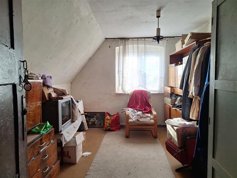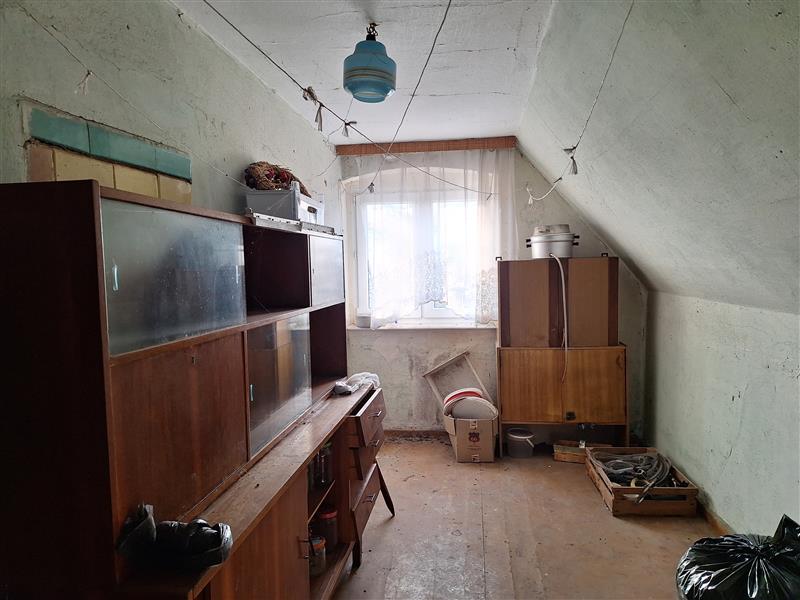 Na sprzedaż klimatyczny dom o powierzchni parteru 34 m2 z przestronnym poddaszem do zaadaptowania (obecnie wydzielone są dwa pokoje i wędzarnia), z przyległymi budynkami gospodarczymi o łącznej powierzchni 21 m2, położony na przestronnej działce 1200 m2 w spokojnej, zielonej okolicy.
