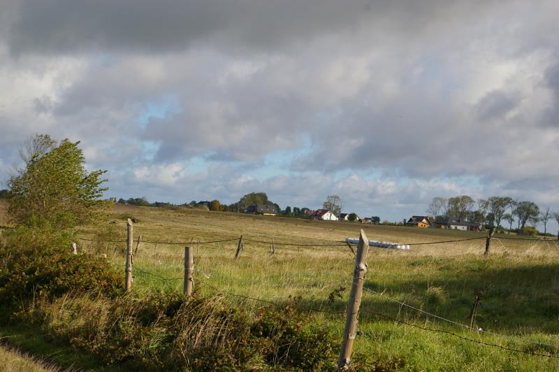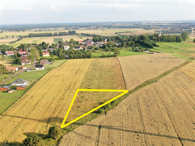 Działka budowlana w kształcie trójkąta o długościach boków 42 x 73 x 85 m, położona w odległości 2 km od morza.