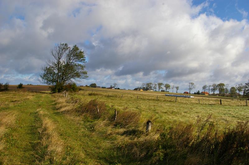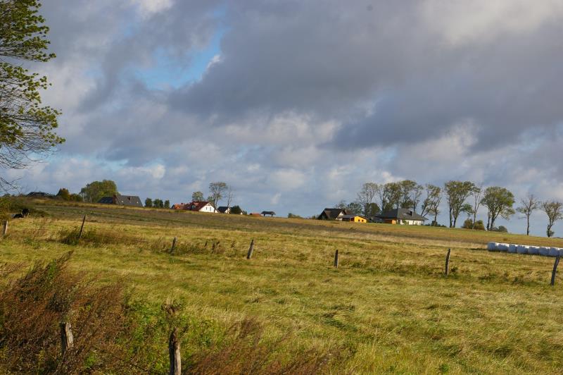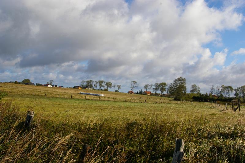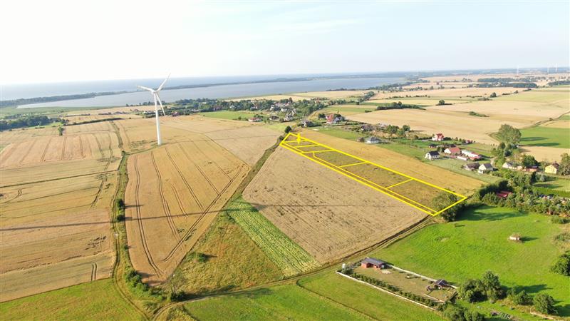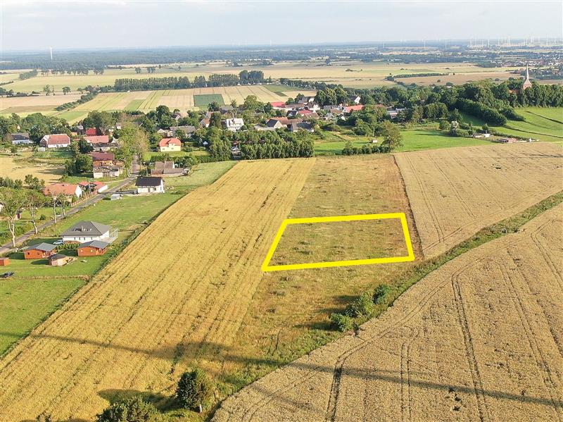 Działka budowlana w kształcie prostokąta o długościach boków 43 x 35 m, położona w odległości 2 km od morza.