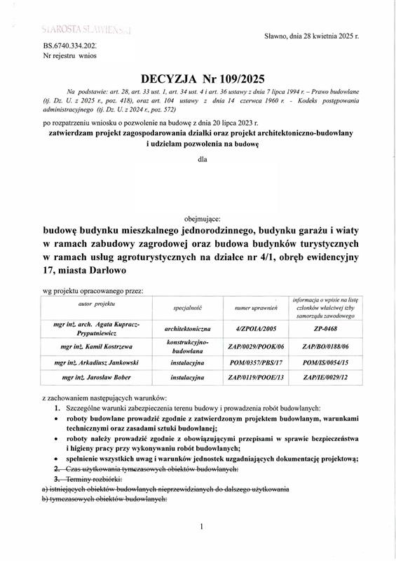Wydane pozwolenie na budowę obejmuje: