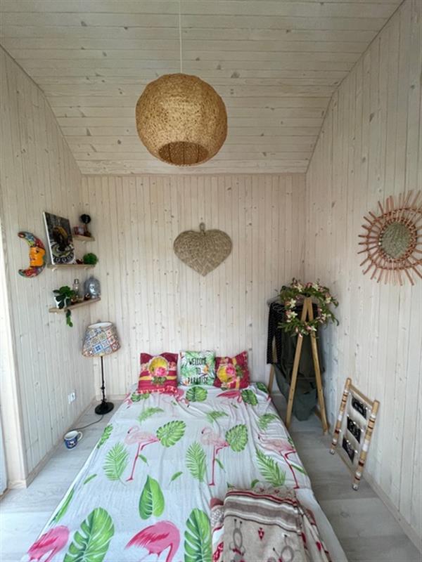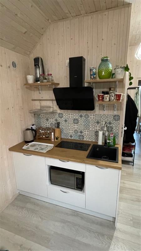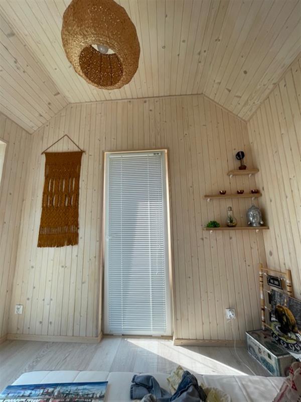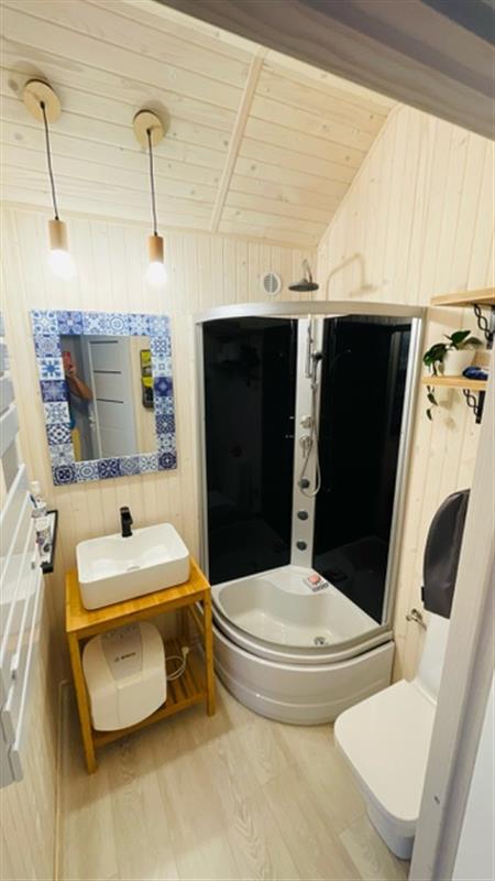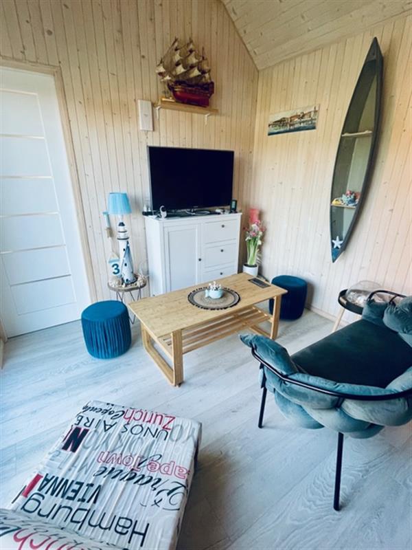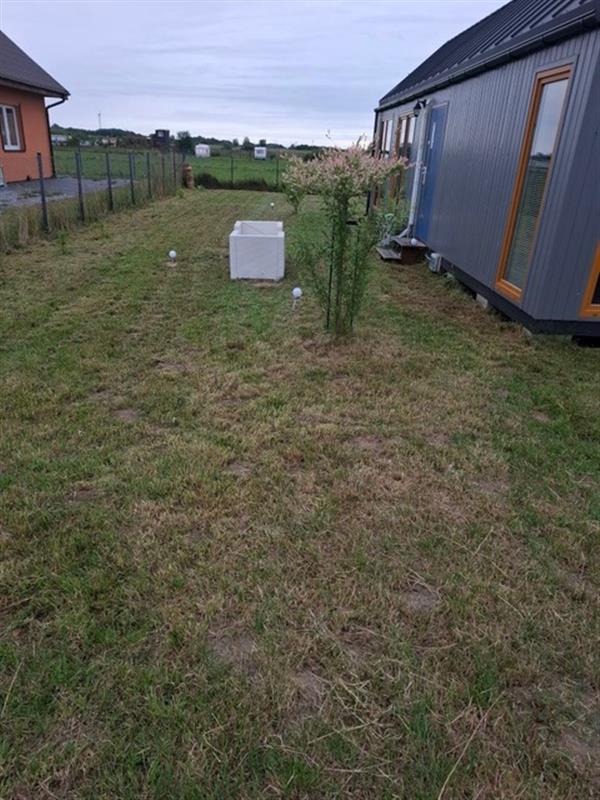 Domek został wybudowany na zgłoszenie i ujęty w ewidencji geodezyjnej. Wnętrza urządzono z dbałością o detale, z dominacją naturalnego drewna, co tworzy przytulny i ciepły klimat. Nieruchomość oferuje umeblowane pomieszczenia, łazienkę oraz funkcjonalną kuchnię wyposażoną w niezbędne AGD. Komfort użytkowania zapewniają m.in. klimakonwektor marki Gree, dostęp do WiFi oraz system kamer IP.