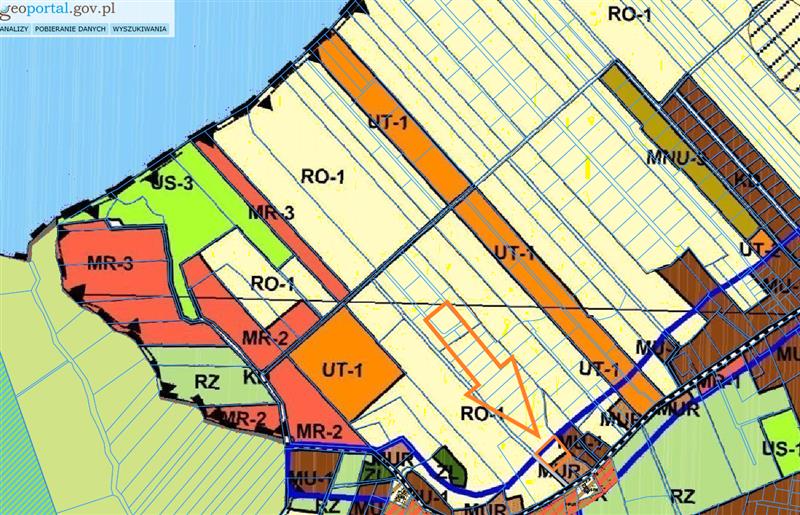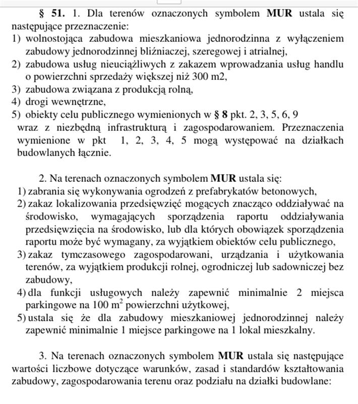 MUR (ok. 830 m2, południowa część działki bliżej drogi) – zabudowa mieszkaniowa, usługi nieuciążliwe oraz produkcja rolna
